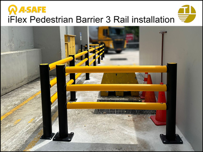 A-SAFE iFlex Pedestrian Barrier 3 Rail is designed to segregate and safeguard pedestrians from moving vehicles and potential workplace hazards.