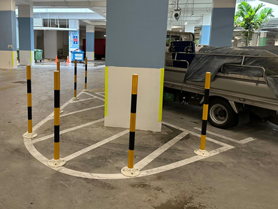 Delineators (also known as “flexible” bollards) are used to guide drivers to stay within the drive “path”. They do no offer protection to pedestrian since these delineators (lane markers) has not “strength” to take on impact.
