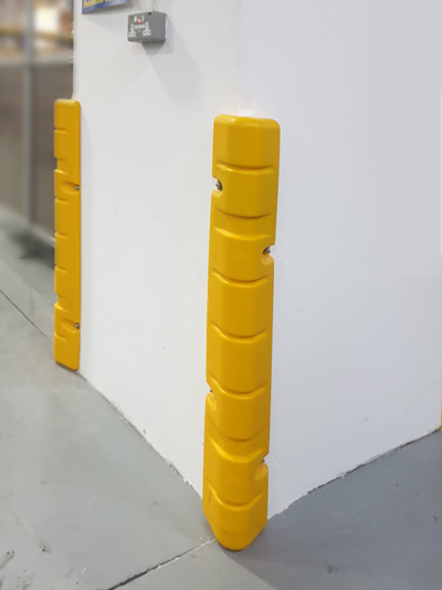 Corner Sentry adds a protective layer to your vulnerable corners. This product is a flexible EVA shield that absorbs impacts and protects both the corner and the vehicle. Vehicle impact is a constant problem for corners in heavy traffic areas. The product is made of a bright yellow EVA material that adds visibility to the area. It is tapered to provide protection to the corner of concrete columns.