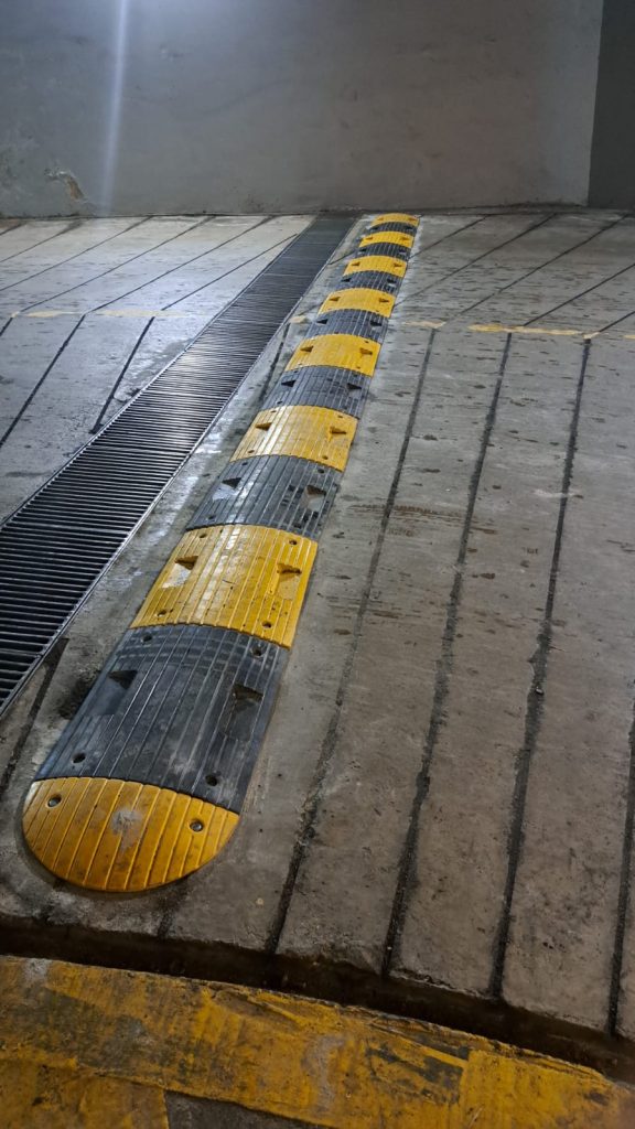 Speed regulating bump installed to slow down traffic in the carpark of myVillage Shopping Mall @ Serangoon Garden.