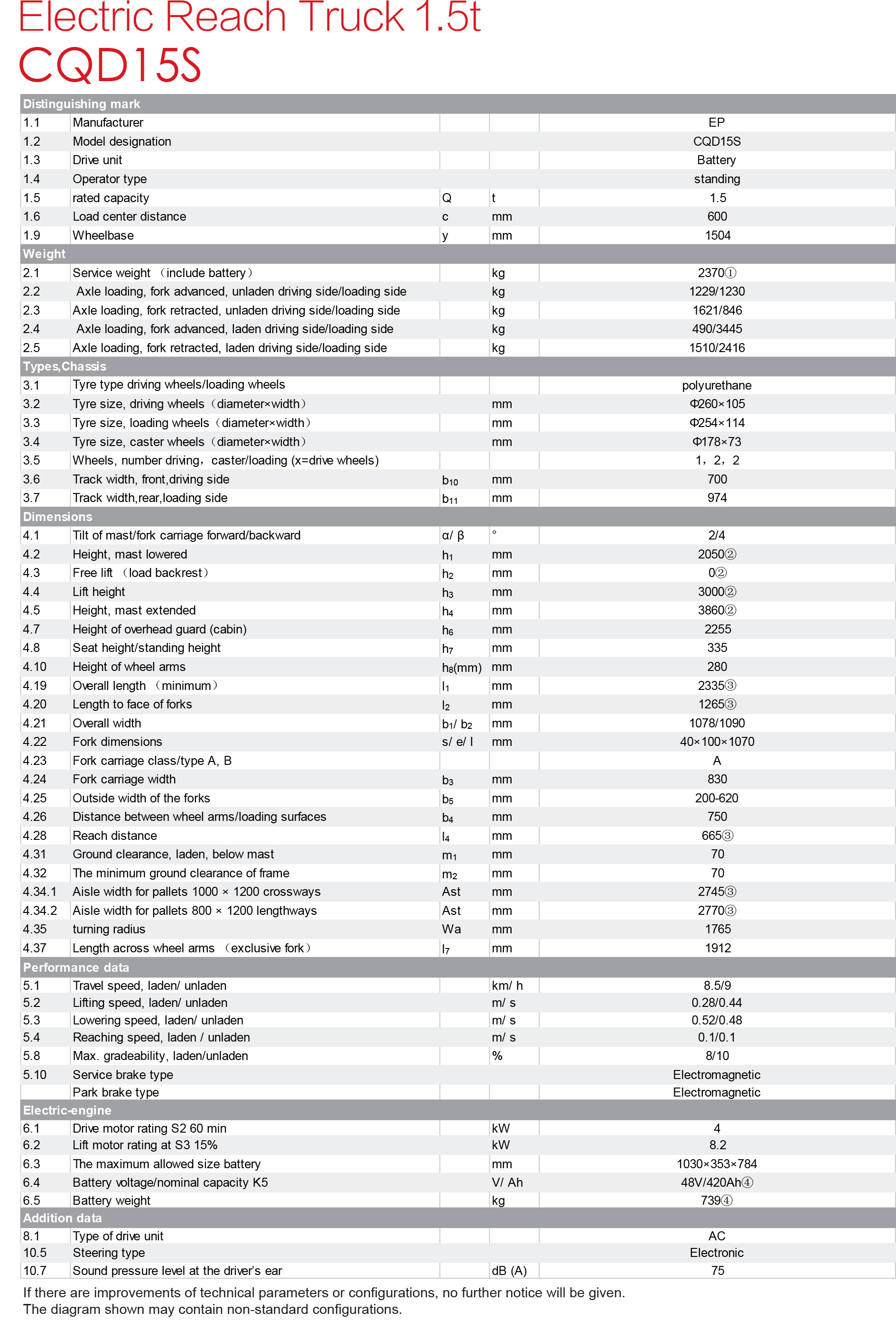 1.5 Ton Stand-on Reach Truck EP CQD15S (5m)