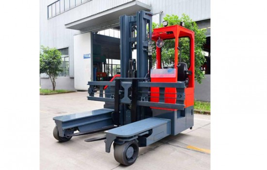 Multi-directional forklift is designed for carrying and lifting long materials. The TFC can travel in the forward and backward direction, traverse sideways and making in-situ rotation. Ideal for moving long materials such as metal profiles, wood, curtain wall, steel pipe through an narrow aisle or doorway by travelling sideways. Rubber tires are suited for the TFC to travel on asphalt surface, offering good traction.