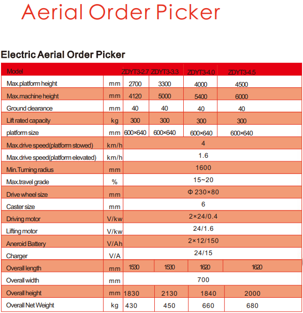 300kg Order Picker REDDOT ZDYT