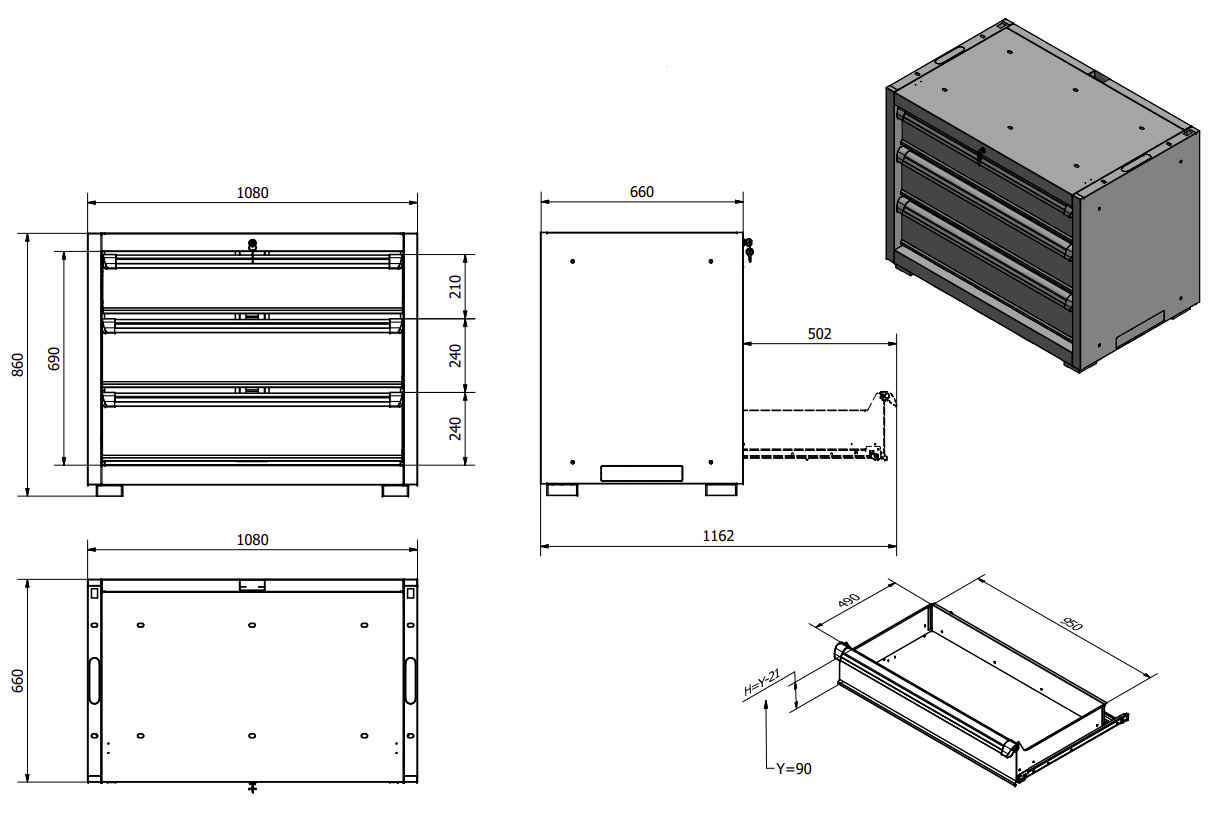 Double Tools Drawer/Cabinet Unit with 3 Drawers DEA.AR-074.10-3: