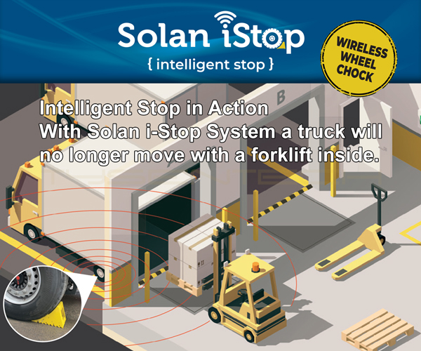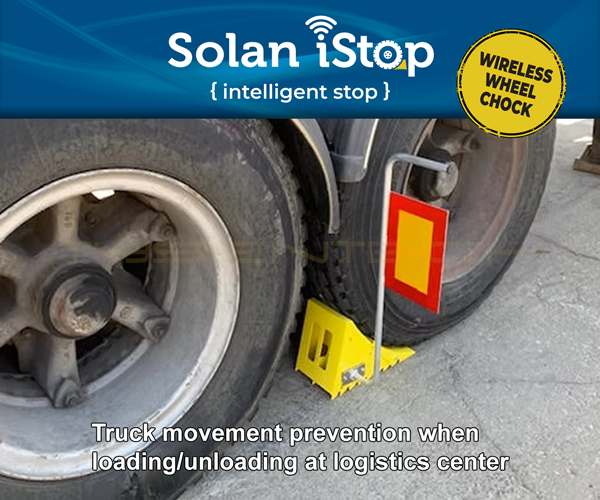 The i-Stop system is designed precisely to prevent recurrence of accidents at logistic centers. The truck driver who park at the platform will not be able to start unloading or loading goods before securing the truck’s tires with Solan’s unique wireless stop-breaker: the i-Stop. Only when i-Stop is attached to the truck wheels it becomes possible to open the logistics center’s platform door and the truck can no longer move from its place. Now the forklift driver can perform his duties safely.